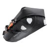Wasserdichte Satteltasche mit Rollverschluss; Montage über haftstarken Klettverschluss und Kompressionsgurte; Ventil mit Griffschlaufe zur Komprimierung des Packvolumens; elastische Kordel auf der Außenseite zur Fixierung von Ausrüstung; versteifter Bodenbereich; abriebfestes, PU-beschichtetes Nylongewebe; verstärktes Material an den Kontaktstellen; Daisy Chain zur Befestigung von Rücklicht oder weiterer Ausrüstung; Reflektoren; geeignet für Montage an Carbon-Sattelstützen.